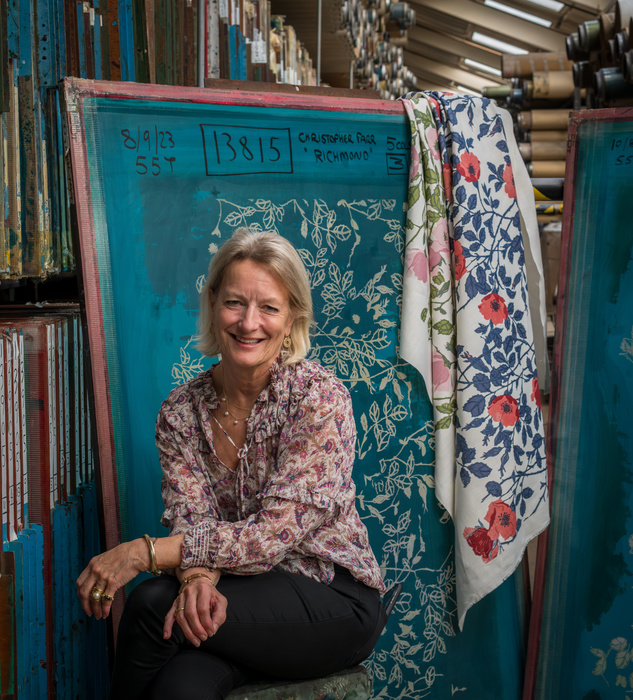 I have a new-found appreciation for interior designers and also the work that goes into producing fabrics and wallpapers, especially since my visit to Ivo Textiles in London. It was here that F&P founder Emma Vans Agnew had a go at printing her 25th anniversary textile, a design called Richmond, created by Michael Szell for Christopher Farr Cloth.